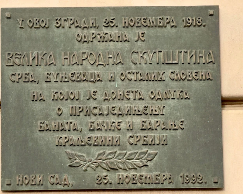 C’est cet événement qui est célébré aujourd’hui par Journée de la Voïvodine (Дан Војводине / Dan Vojvodine), une fête provinciale instaurée en 2018 à l’occasion du centenaire de la décision de la Grande Assemblée. Jusque-là, on se contentait d’un simple dépôt de gerbes au pied de la plaque commémorative située près du bâtiment de la « Vojvođanska banka » sur la place Slobode. Cette année, 2025, le 25 novembre est marqué par l'ouverture d’un Musée de l’Unification à Novi Sad.