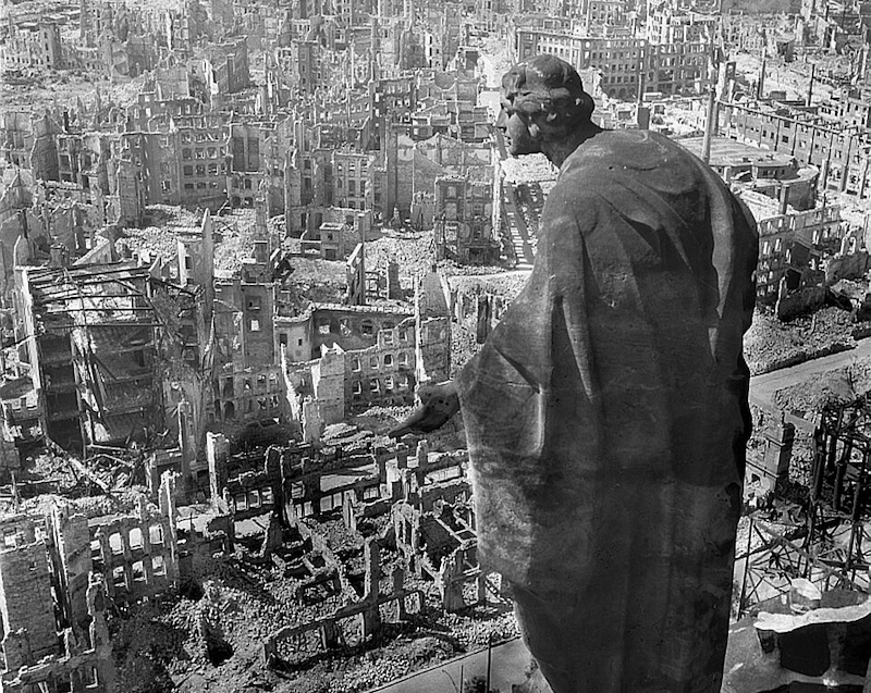 Cette tension politique éclipse les 25 000 victimes de la « tempête de feu », trois jours de bombardement au phosphore (du 13 au 15 février 1945) sur Dresde, la Florence allemande, dont il ne restera plus que des ruines. Après ceux d’Hiroshima et de Nagasaki, il s’agit du bombardement aérien le plus meurtrier de la Seconde Guerre mondiale. Pourtant, Dresde n’était pas un objectif stratégique majeur et, en février 1945, l’Allemagne était déjà à genoux. Un demi-siècle plus tard, les Anglais et les Américains ont finalement prononcé des excuses pour tant de victimes civiles inutiles. Mais, comme il s’agissait de punir un pays et un peuple à l’origine de plusieurs millions de morts en Europe, l’histoire a finalement relégué ce drame au rang de simple épisode de la guerre.