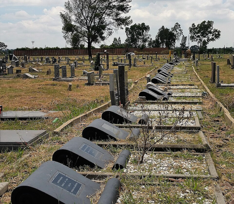 La rangée de tombes des victimes du massacre de Sharpeville, au cimetière de Phelindaba de Sharpeville (photo Andrew Hall)